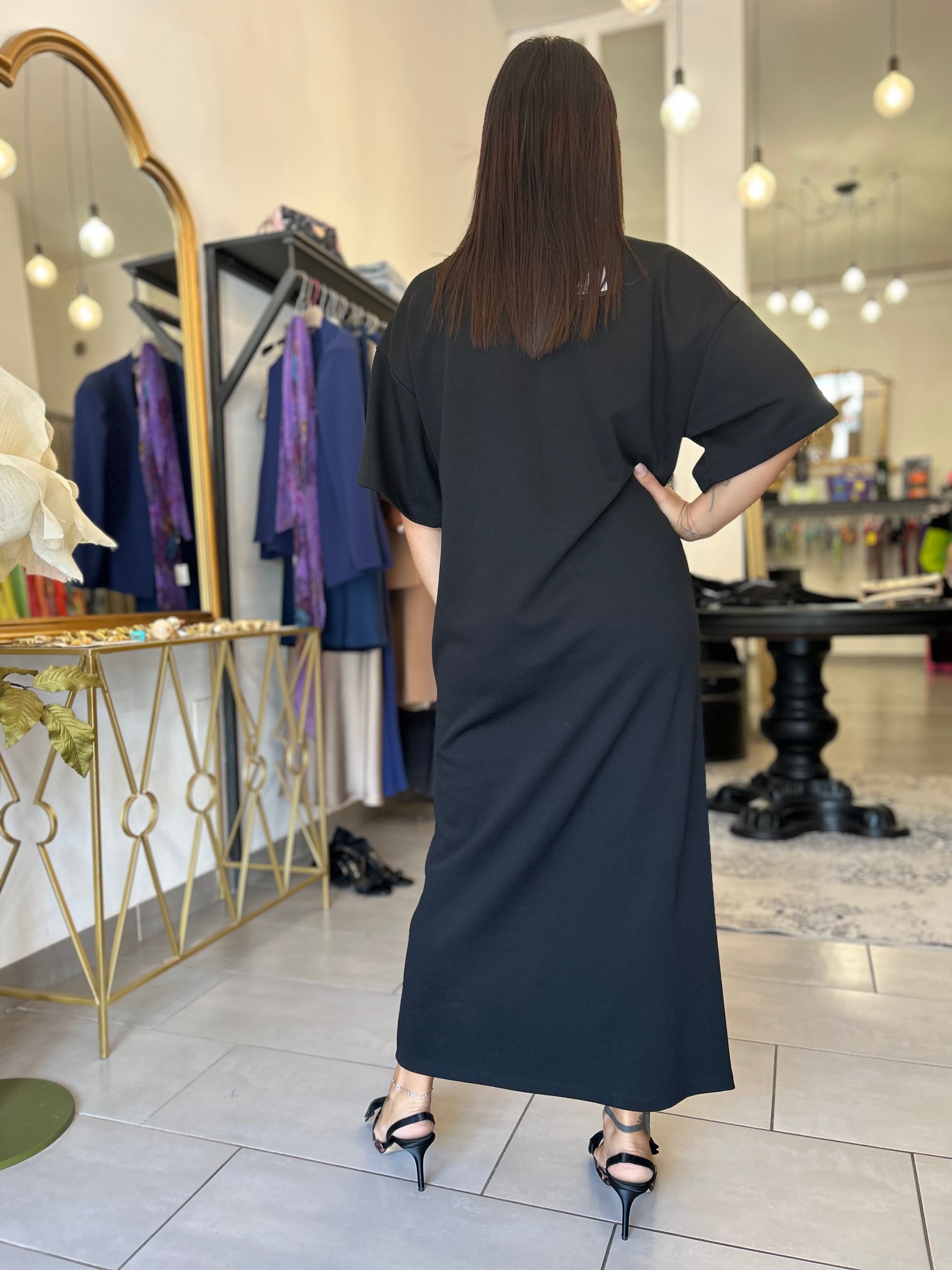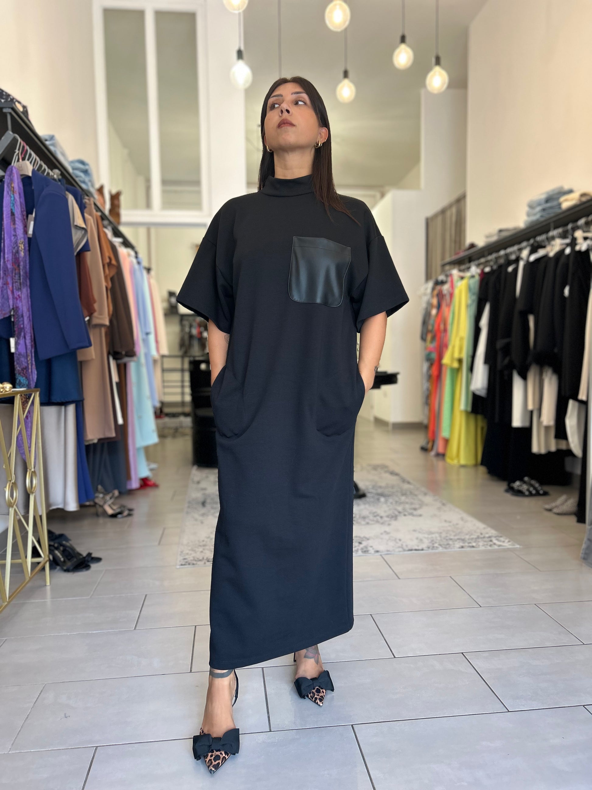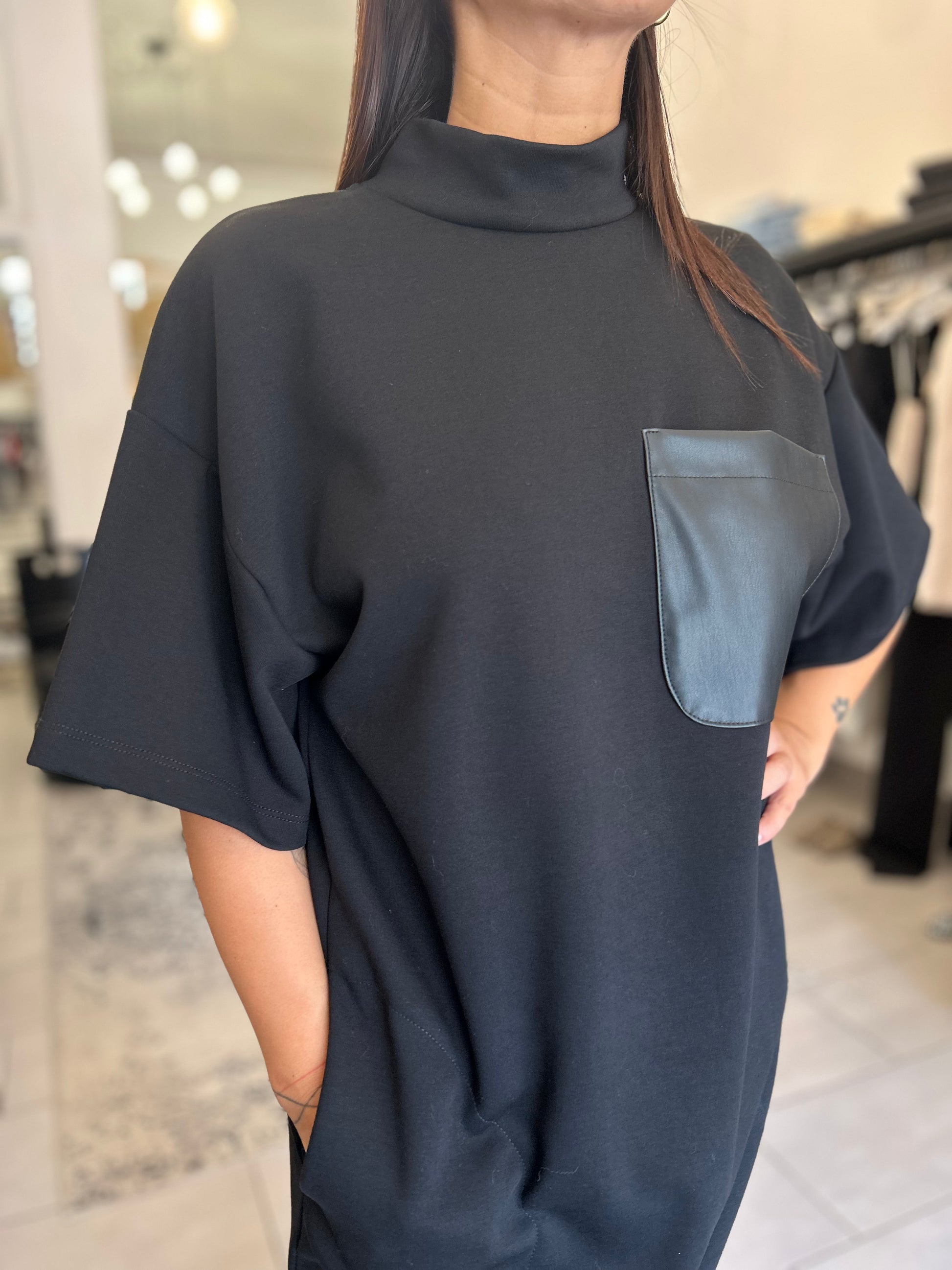 Abito Dixie in felpa con collettino alto e taschino in pelle, morbido e comodo, variante di colore nero