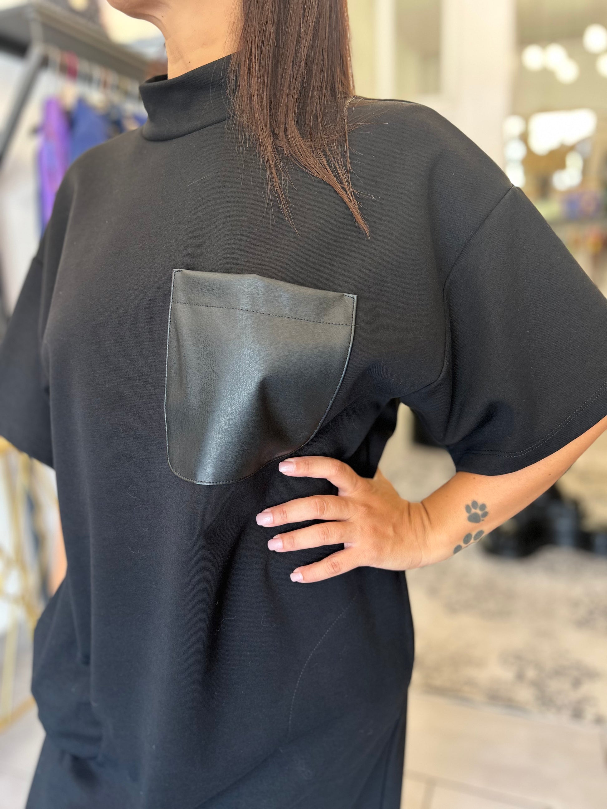 Abito in felpa con taschino in ecopelle