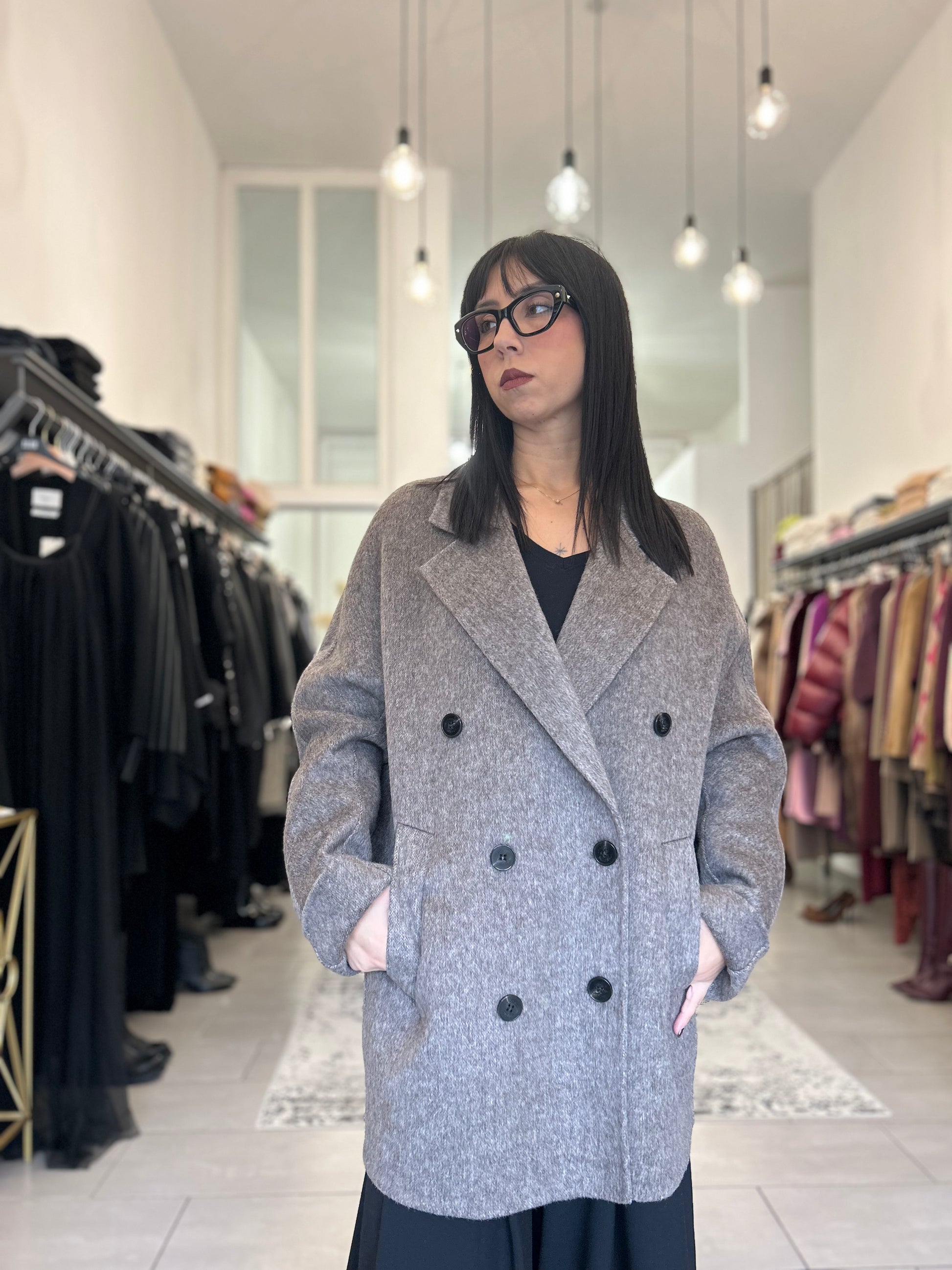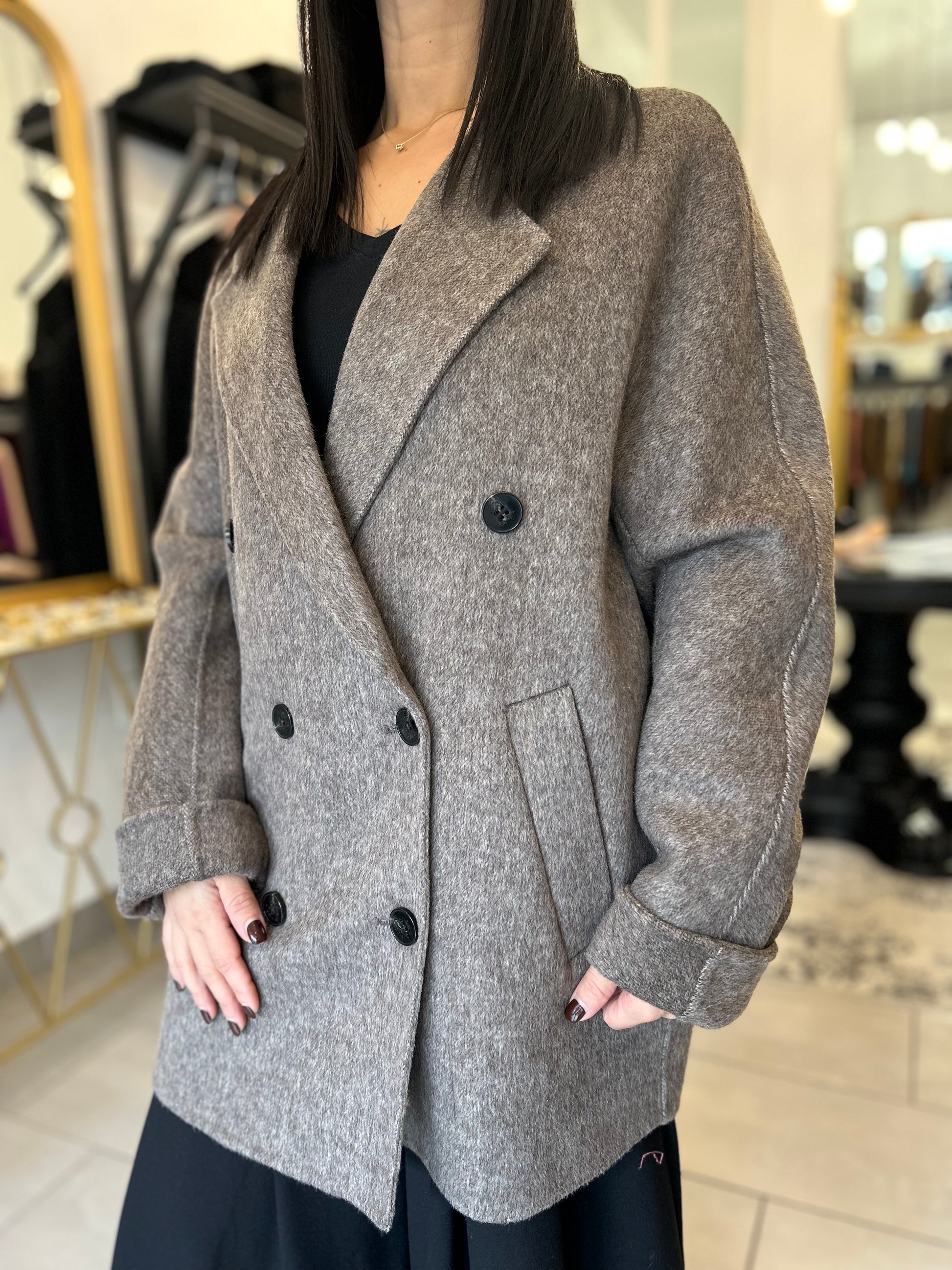 Cappottino vicolo colore tortora melange, una tonalità neutra e sofisticata che unisce sfumature di grigio e beige caldo. Questa nuance lo rende estremamente versatile e facile da abbinare sia a tinte chiare che scure, perfetta per look eleganti o quotidiani