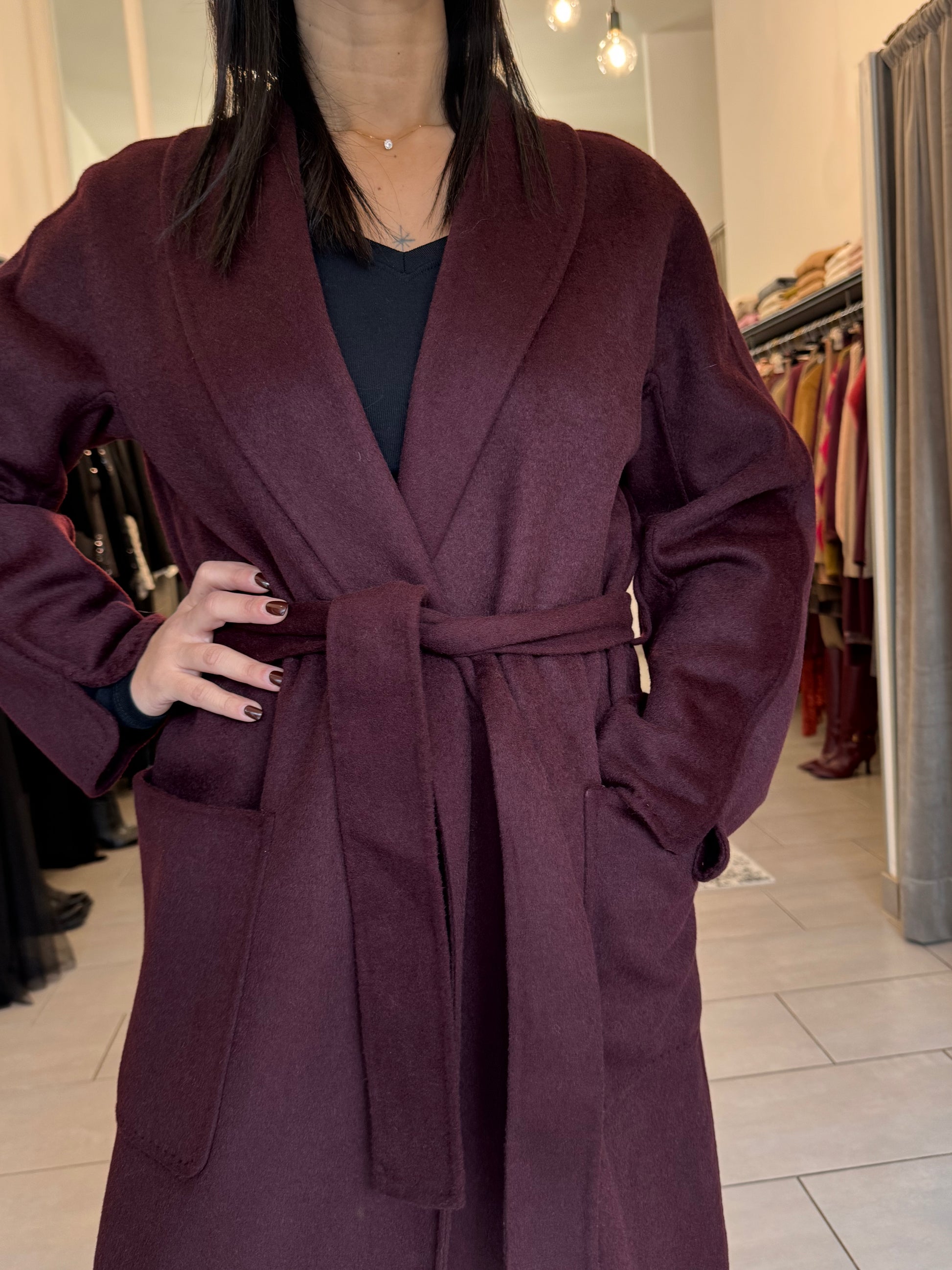 Cappotto lungo sciallato in misto lama Vicolo bordeaux