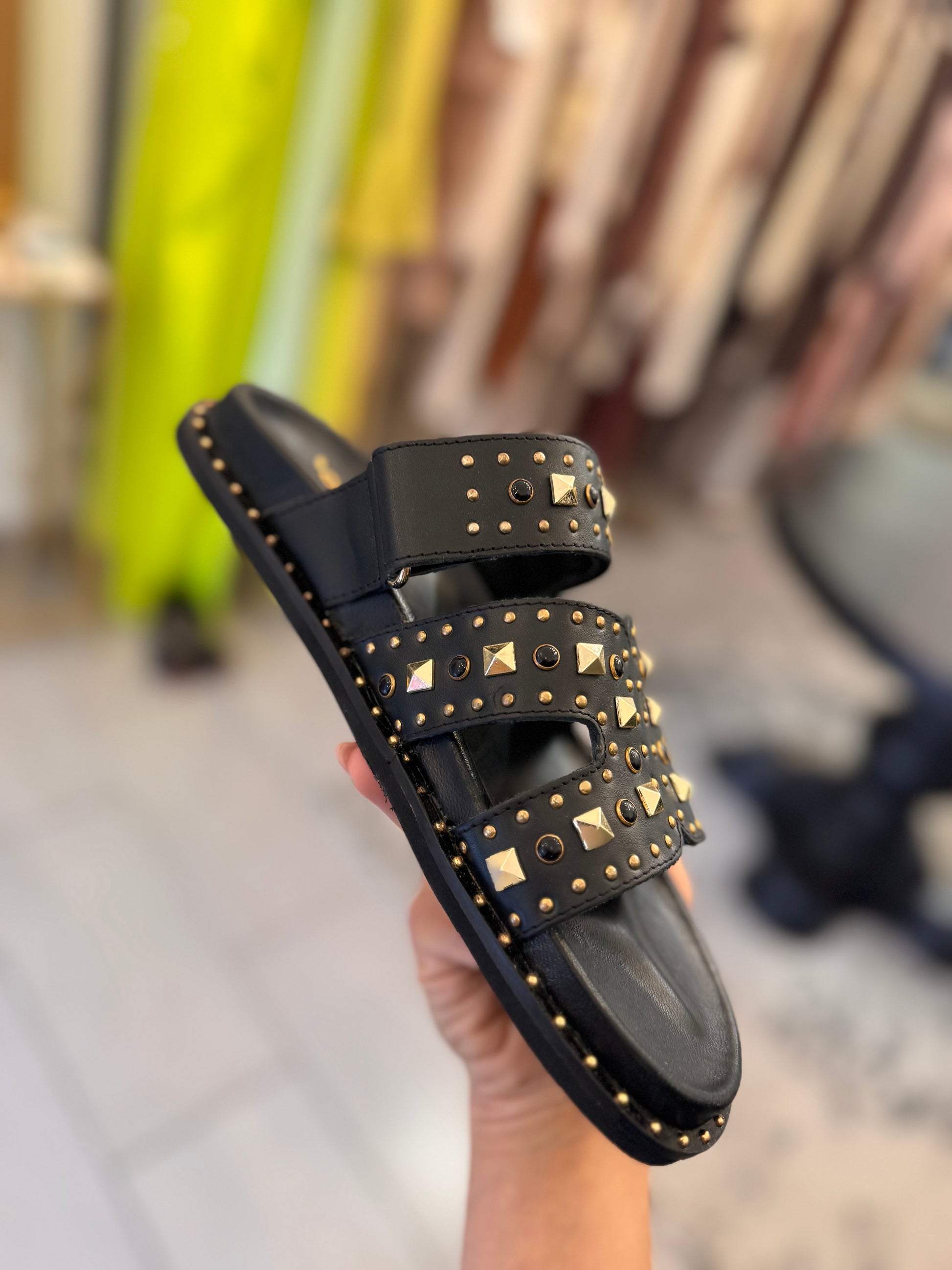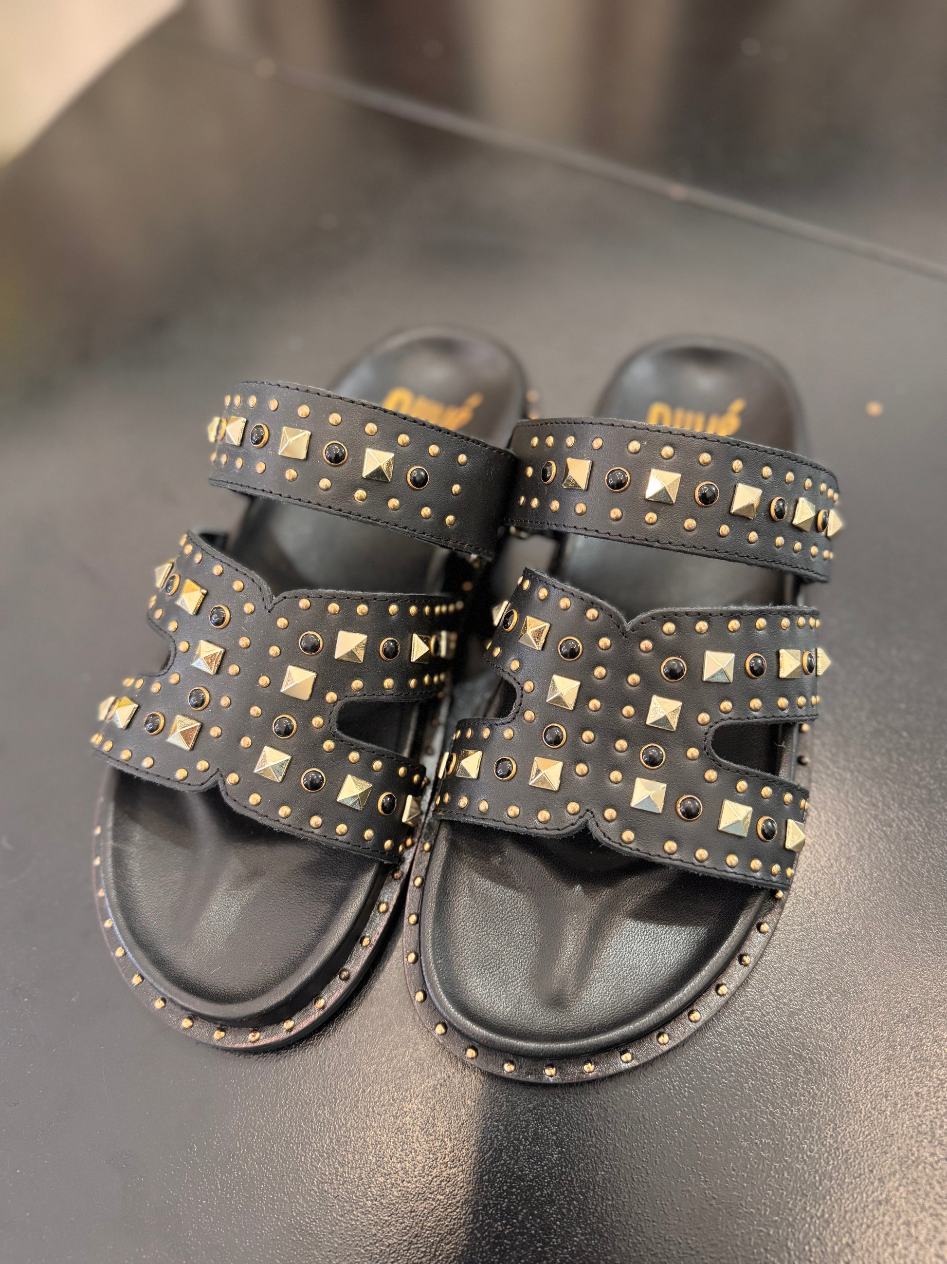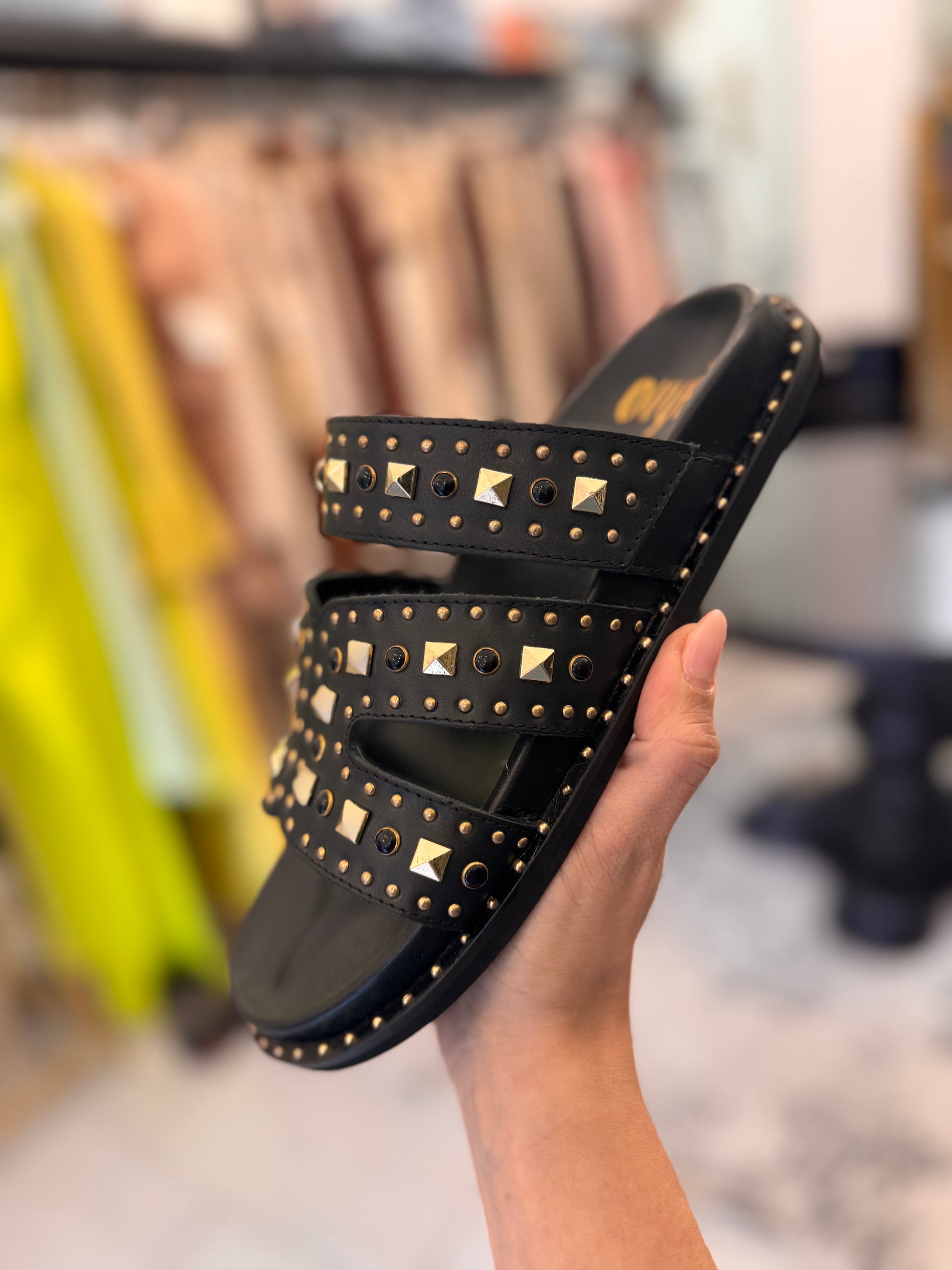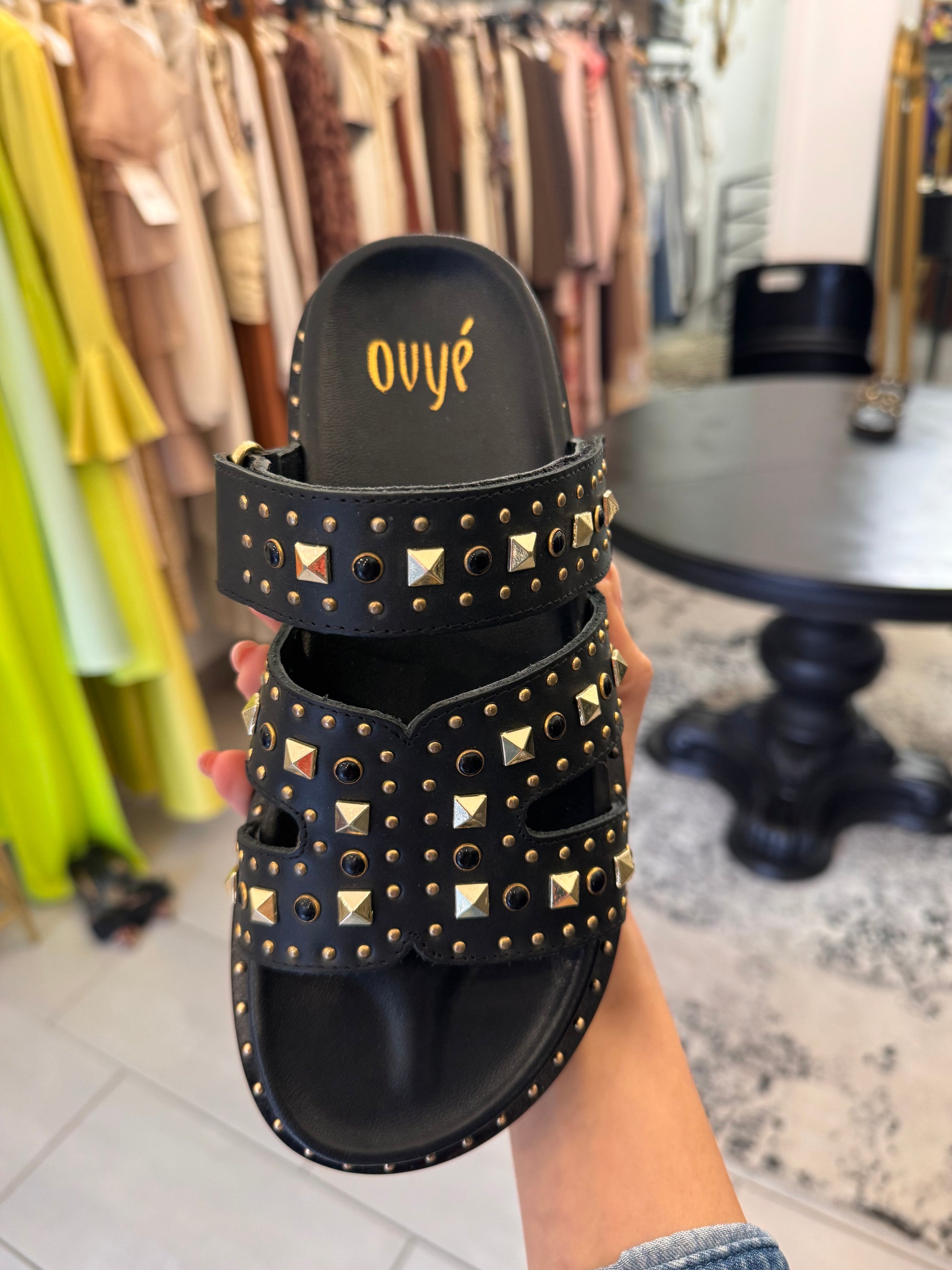 Ciabatte nere Ovyè con borchie dorate