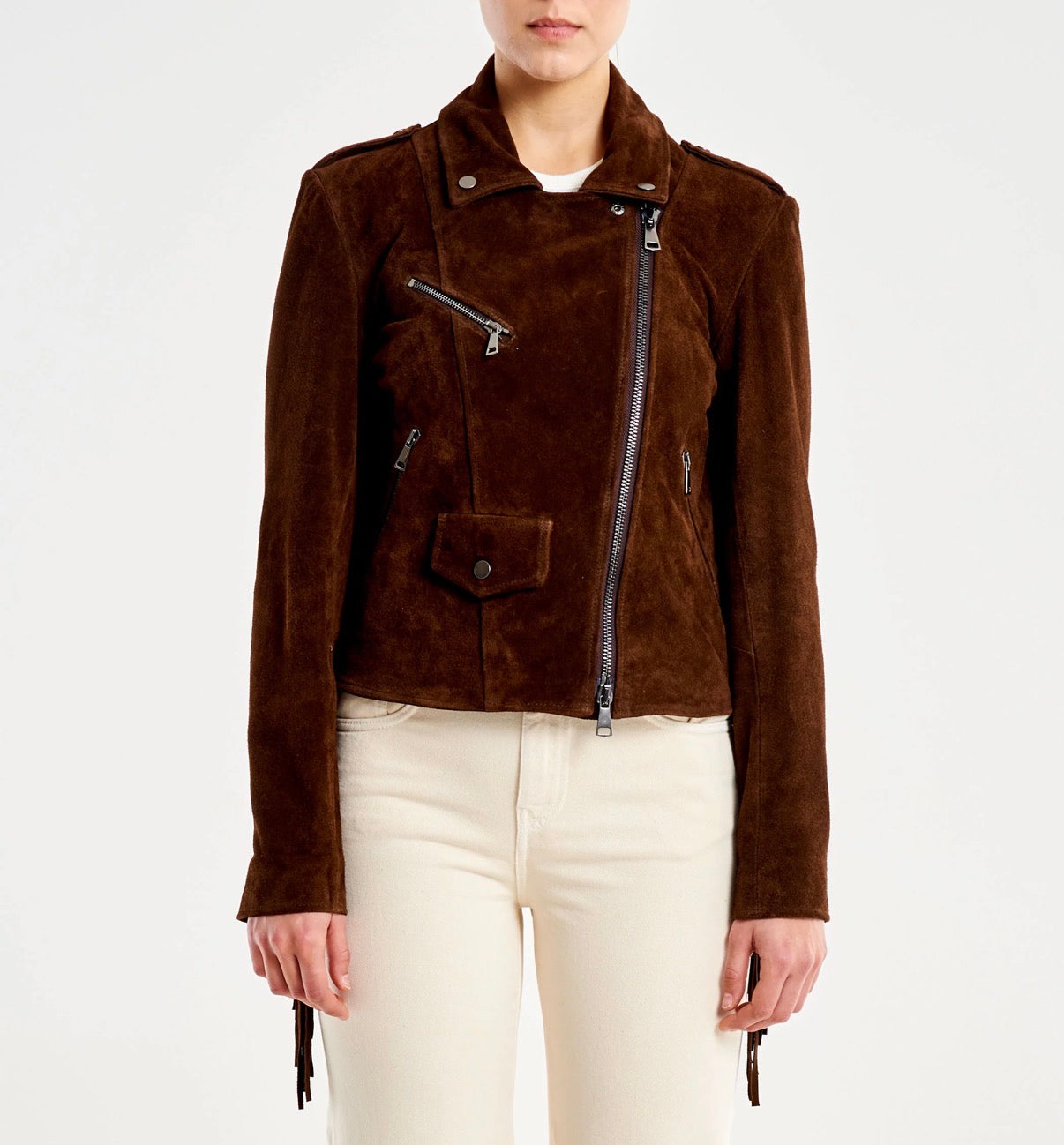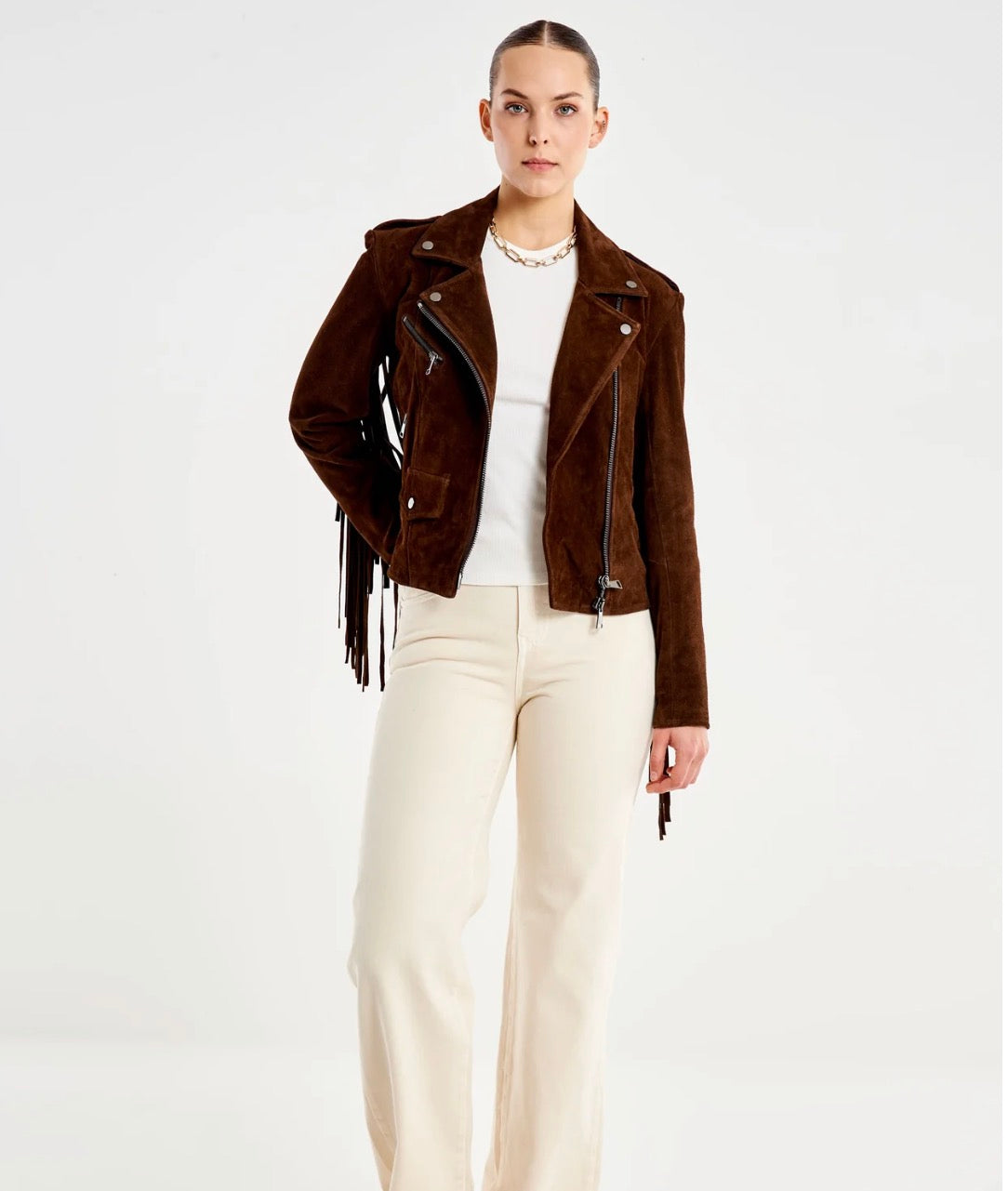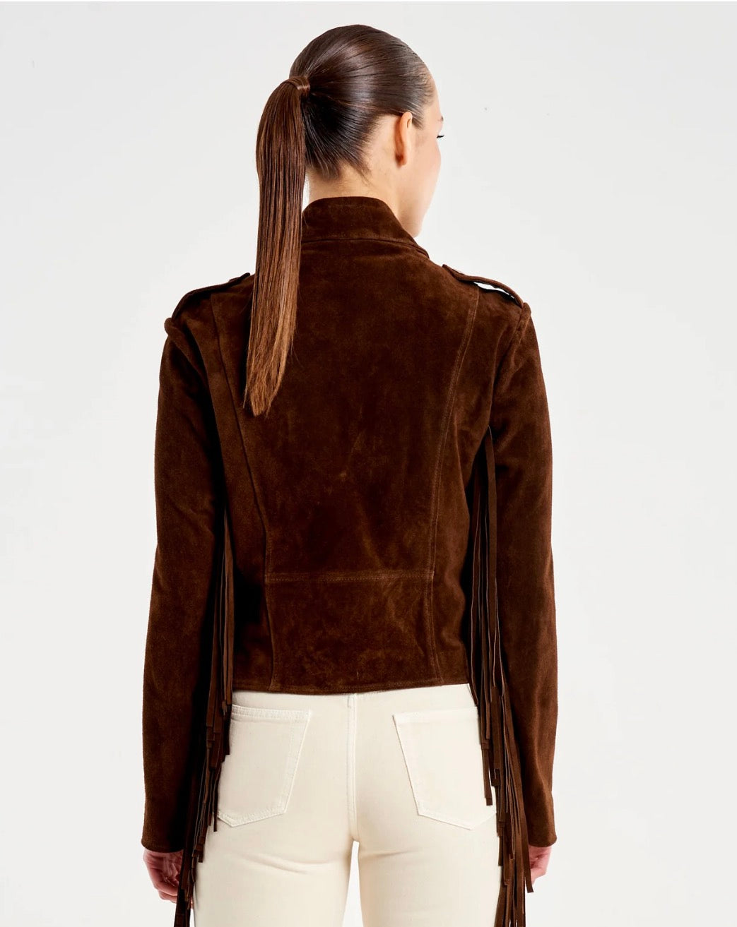 Chiodo in Vera Pelle Scamosciato con Frange Vicolo