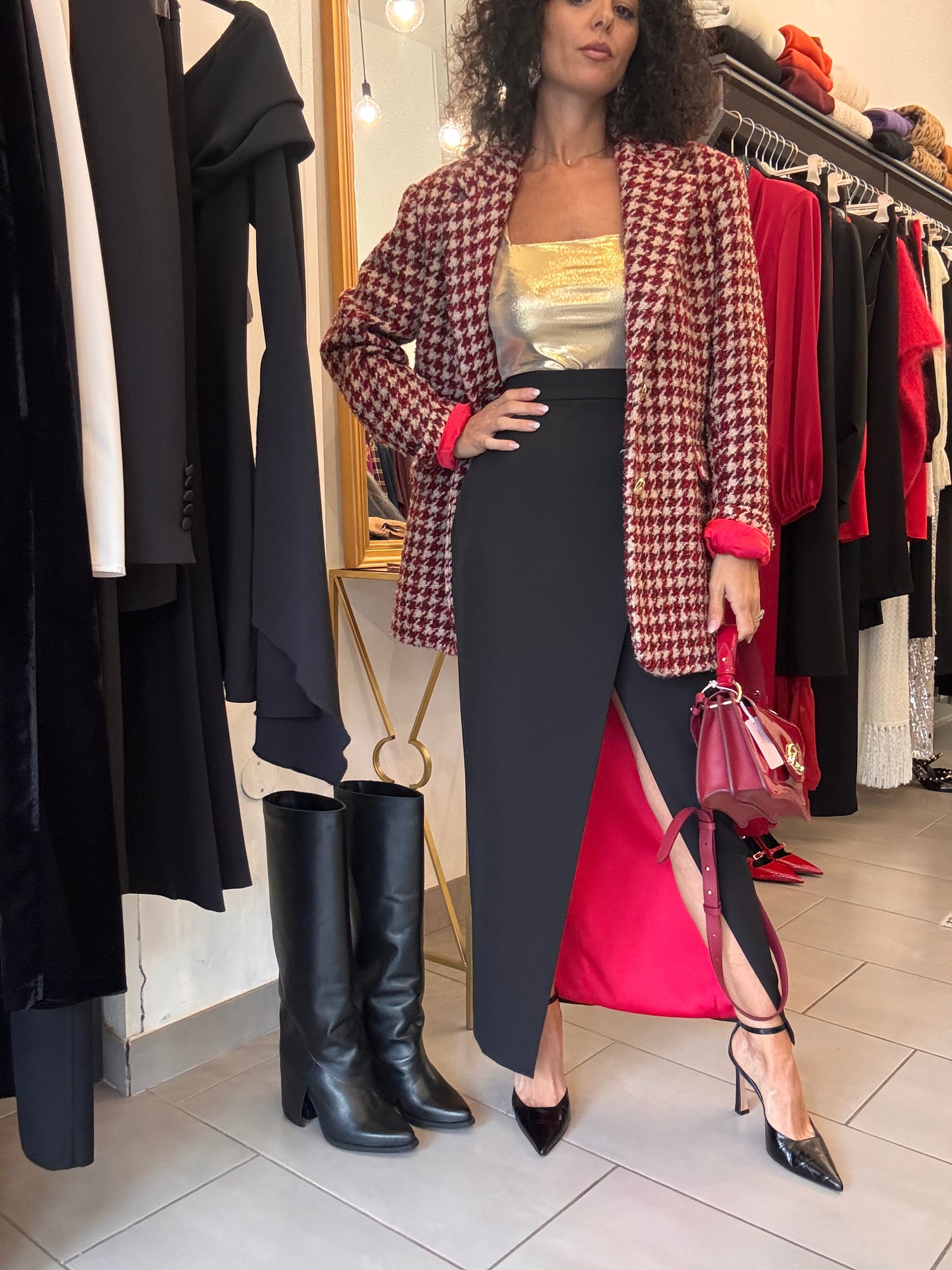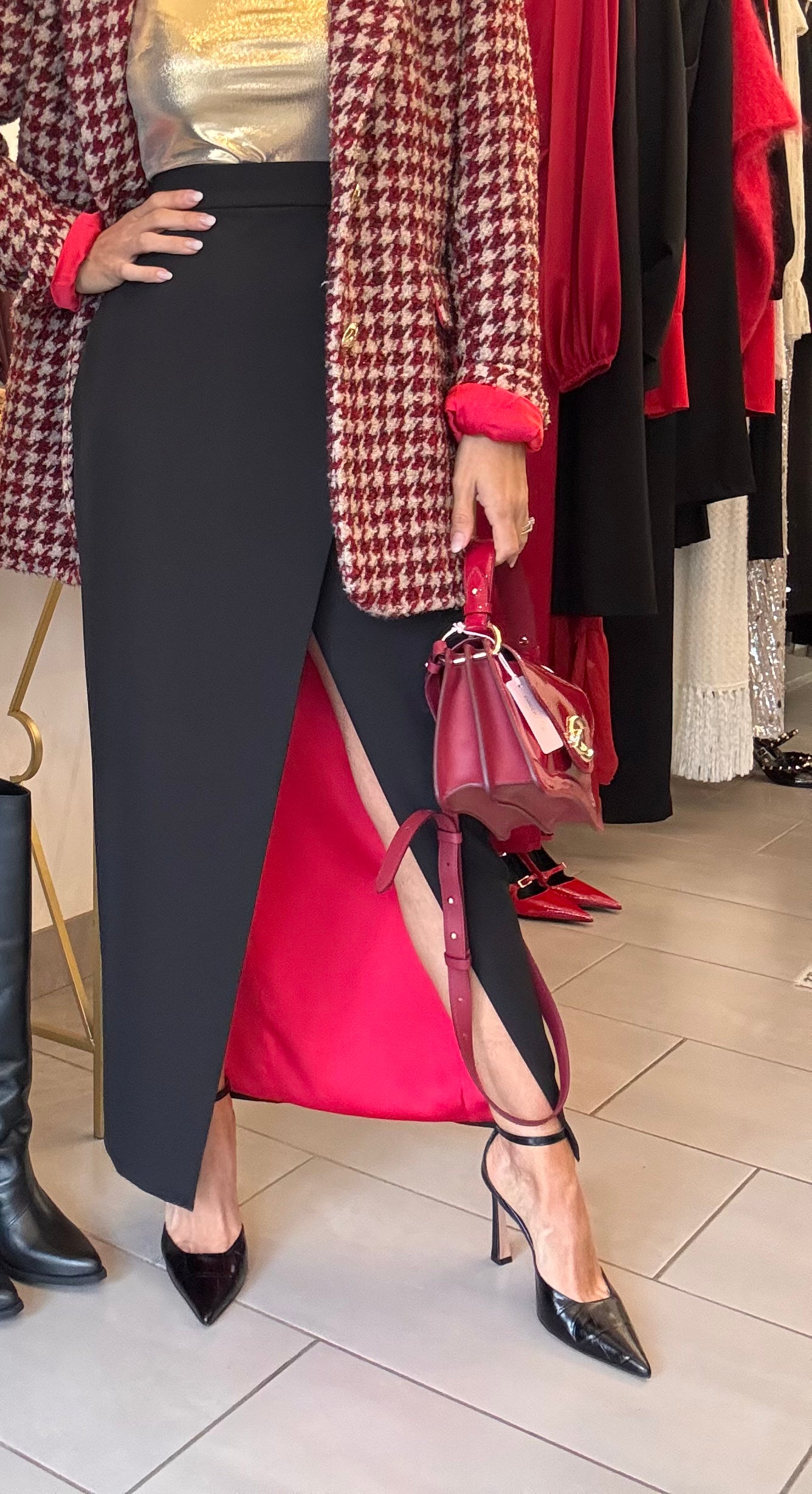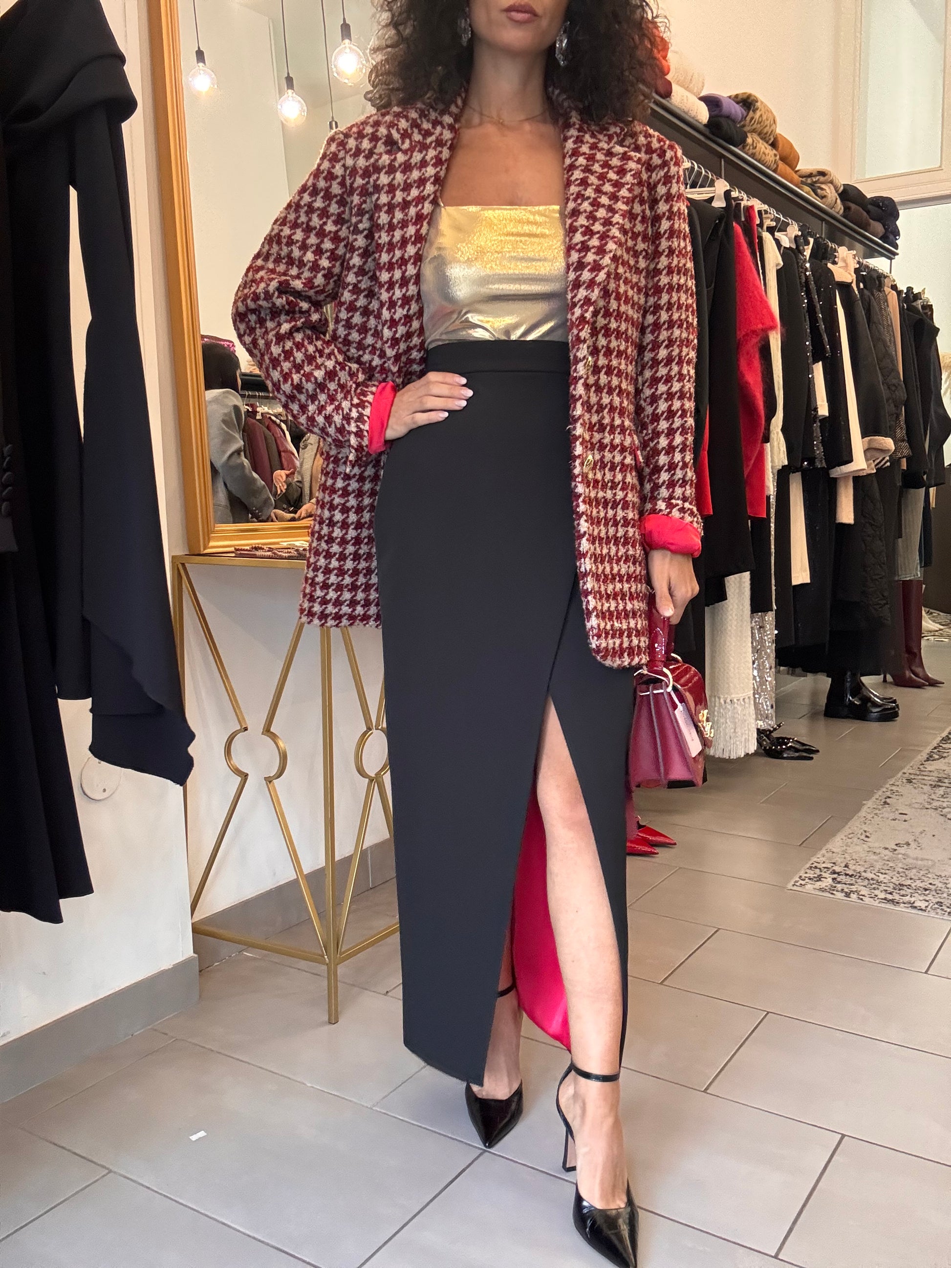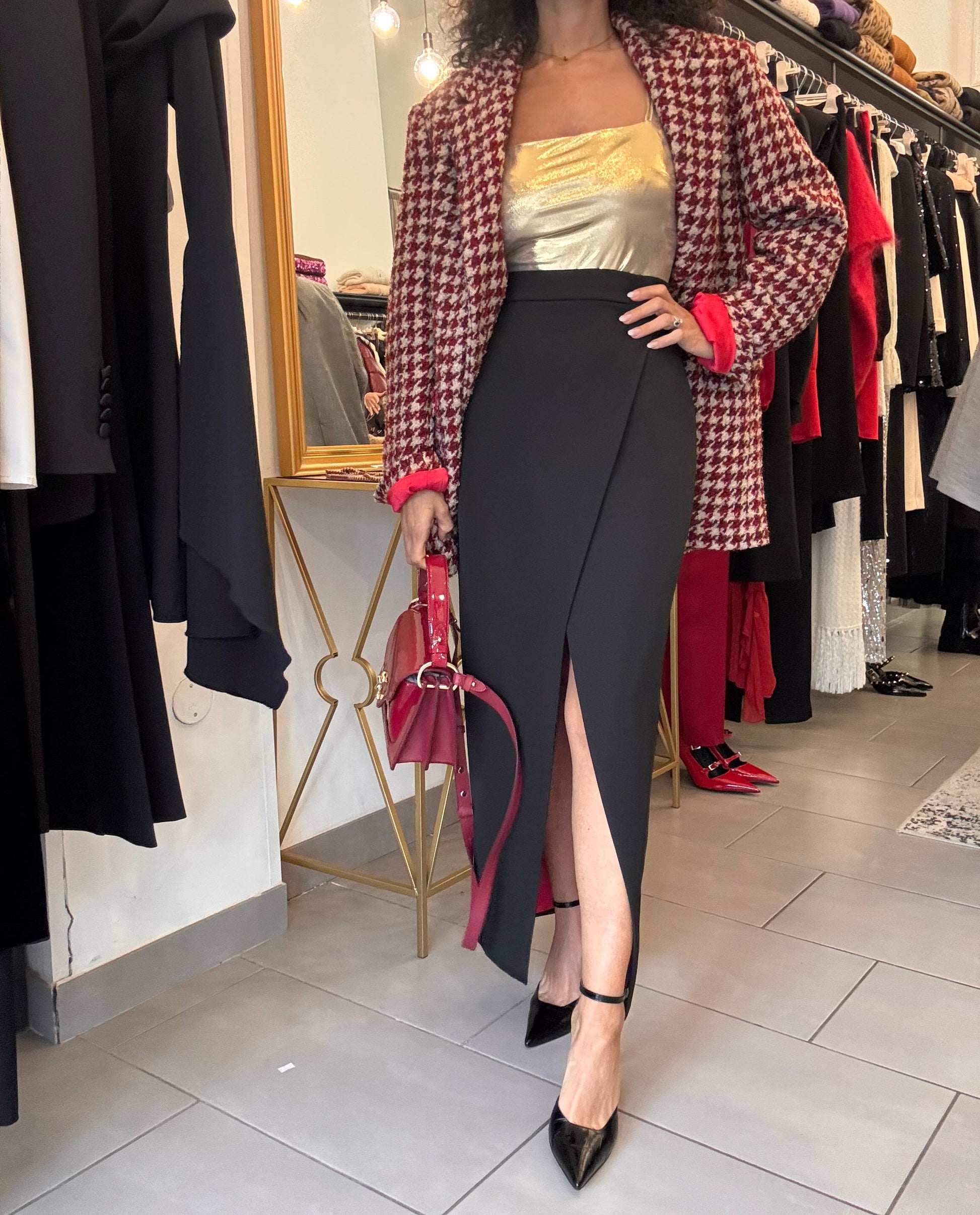Gonna lunga nera con fodera rossa Silence